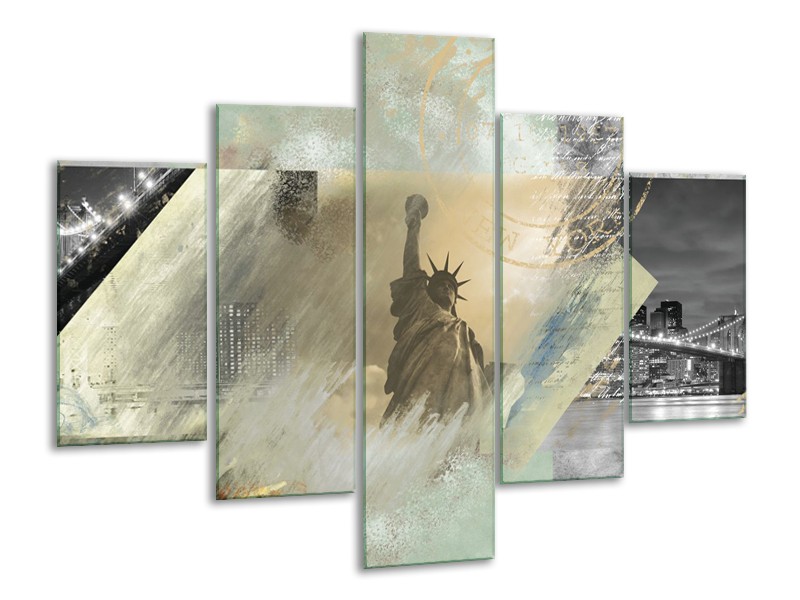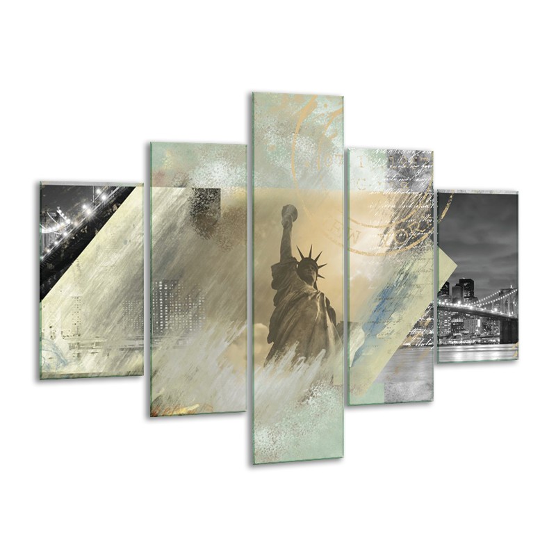 Glasschilderij Vrijheidsbeeld, New York | Grijs, Crème , Groen | 100x70cm 5Luik