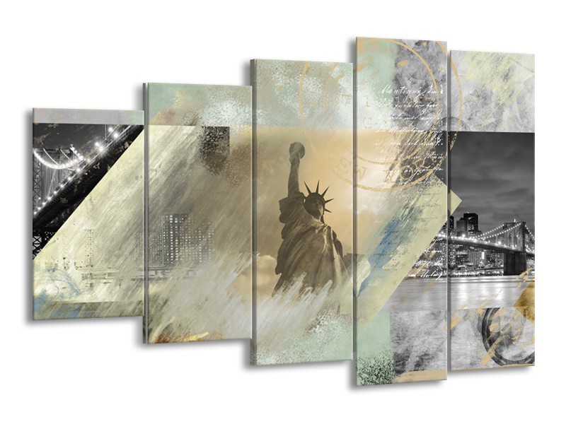 Glasschilderij Vrijheidsbeeld, New York | Grijs, Crème , Groen | 150x100cm 5Luik
