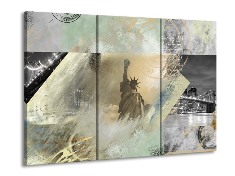 Glasschilderij Vrijheidsbeeld, New York | Grijs, Crème , Groen | 60x90cm 3Luik