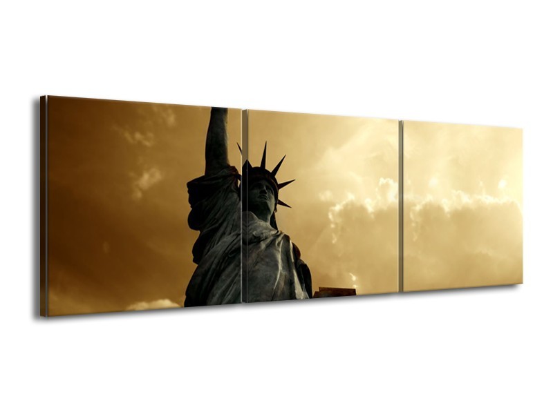 Glasschilderij Vrijheidsbeeld, New York | Grijs, Geel, Bruin | 150x50cm 3Luik