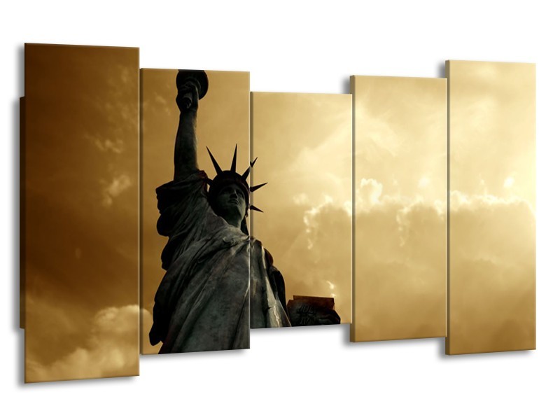 Glasschilderij Vrijheidsbeeld, New York | Grijs, Geel, Bruin | 150x80cm 5Luik