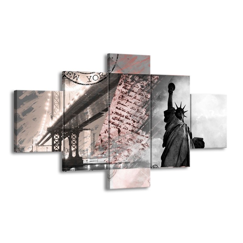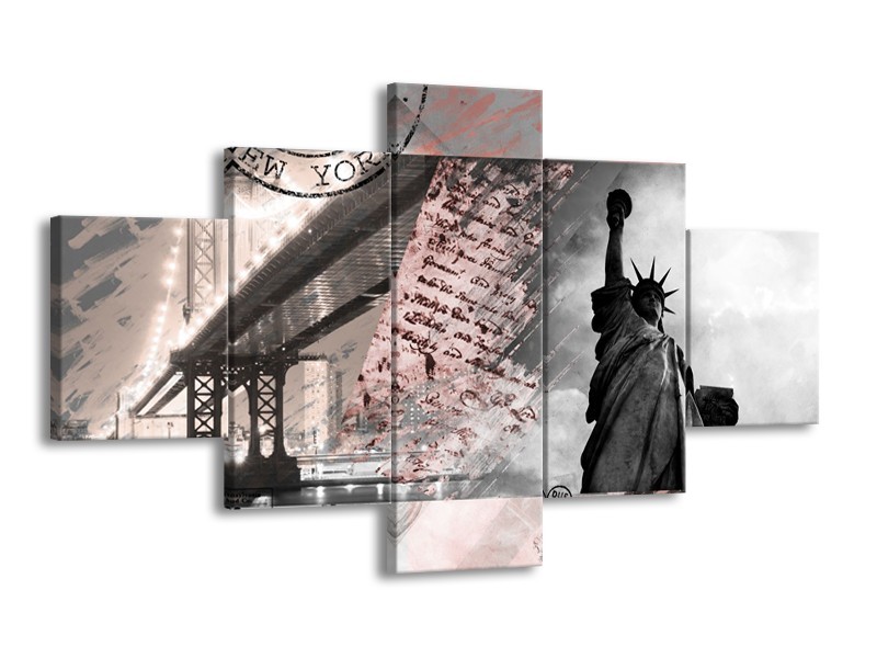 Glasschilderij Vrijheidsbeeld, New York | Grijs, Rood, Zwart, Wit | 125x70cm 5Luik
