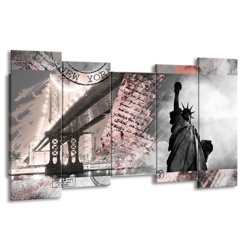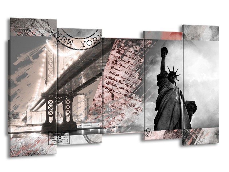 Glasschilderij Vrijheidsbeeld, New York | Grijs, Rood, Zwart, Wit | 150x80cm 5Luik