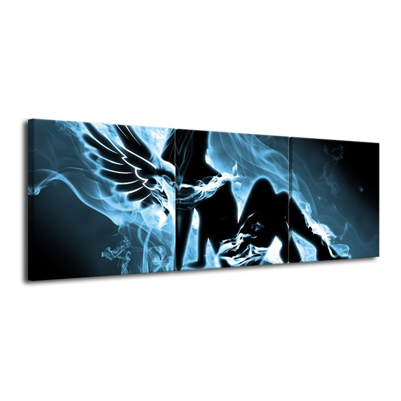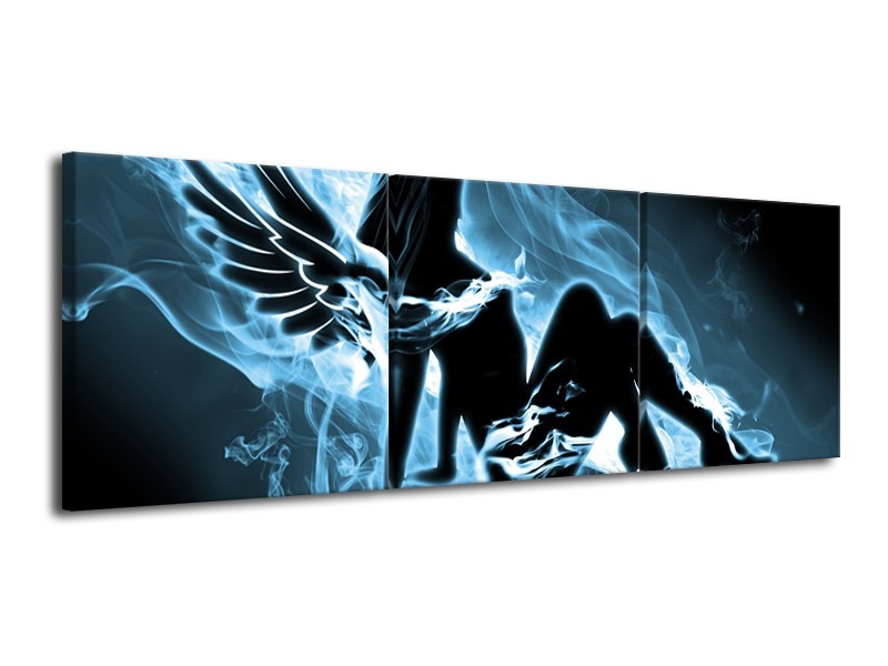 Glasschilderij Vrouw, Engel | Blauw, Zwart, Grijs | 120x40cm 3Luik