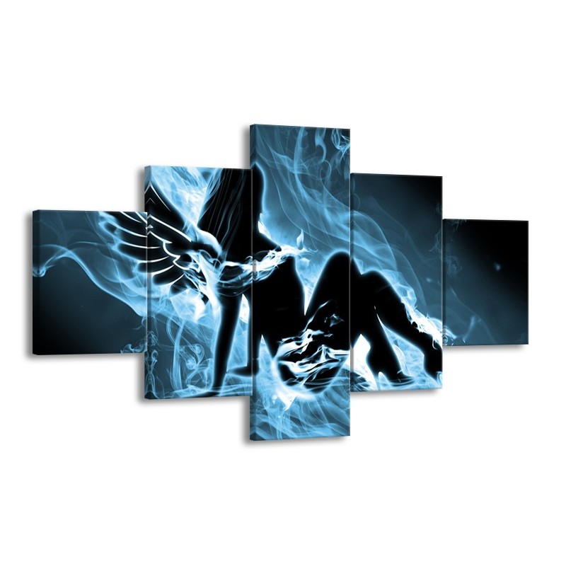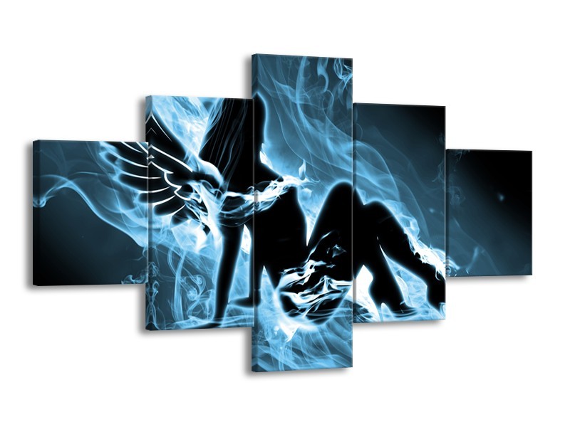 Glasschilderij Vrouw, Engel | Blauw, Zwart, Grijs | 125x70cm 5Luik