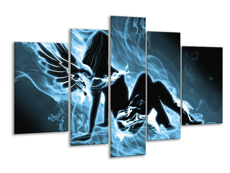 Glasschilderij Vrouw, Engel | Blauw, Zwart, Grijs | 170x100cm 5Luik