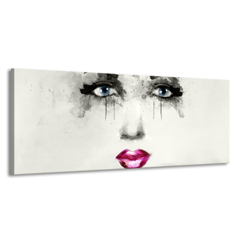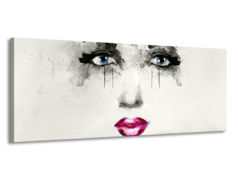 Glasschilderij Vrouw, Gezicht | Zwart, Roze, Crème | 145x58cm 1Luik