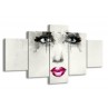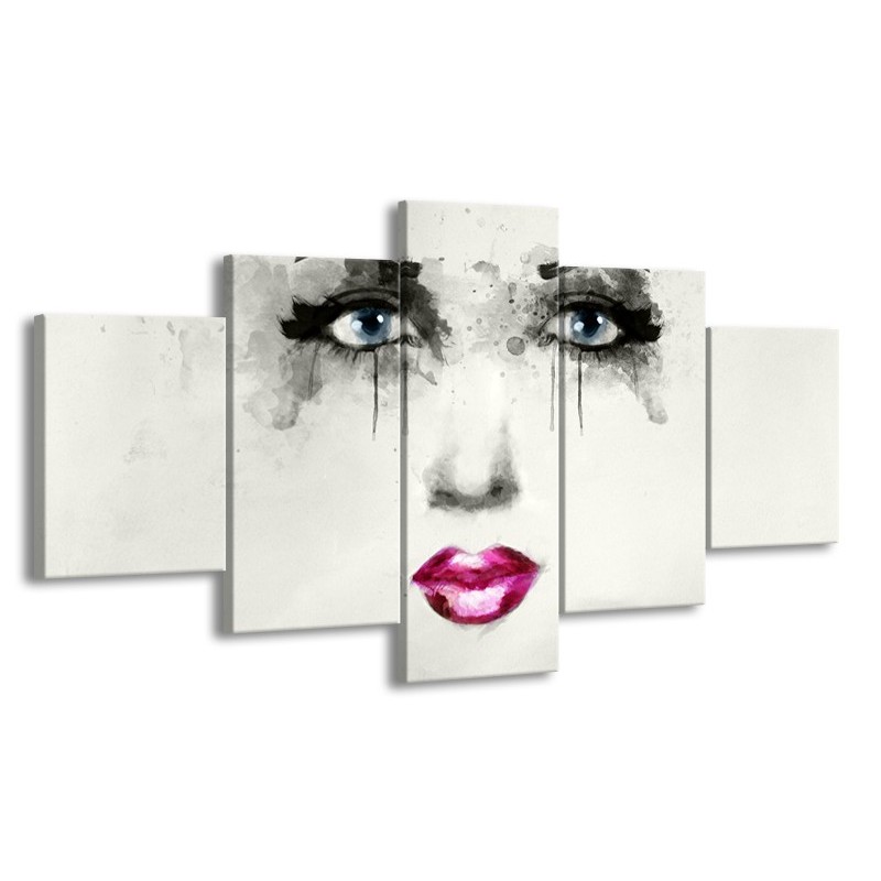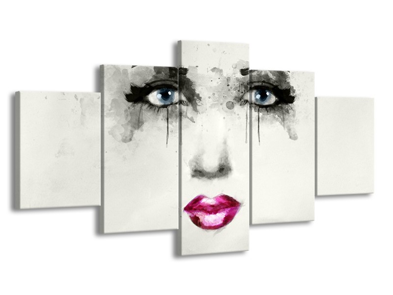 Glasschilderij Vrouw, Gezicht | Zwart, Roze, Crème | 150x80cm 5Luik