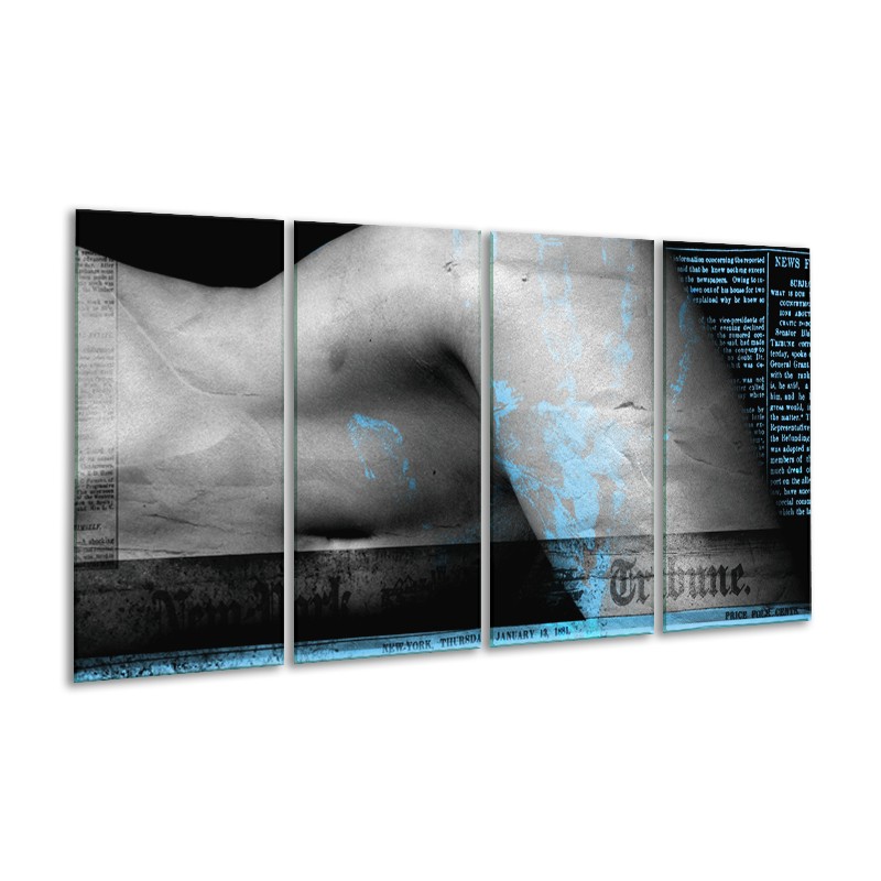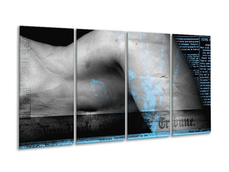 Glasschilderij Vrouw, Kunst | Blauw, Zwart, Grijs | 160x80cm 4Luik