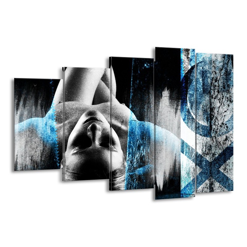 Glasschilderij Vrouw, Kunst | Grijs, Blauw | 150x100cm 5Luik