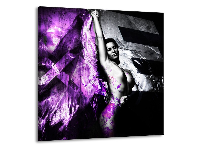Glasschilderij Vrouw, Kunst | Paars, Grijs, Zwart | 70x70cm 1Luik