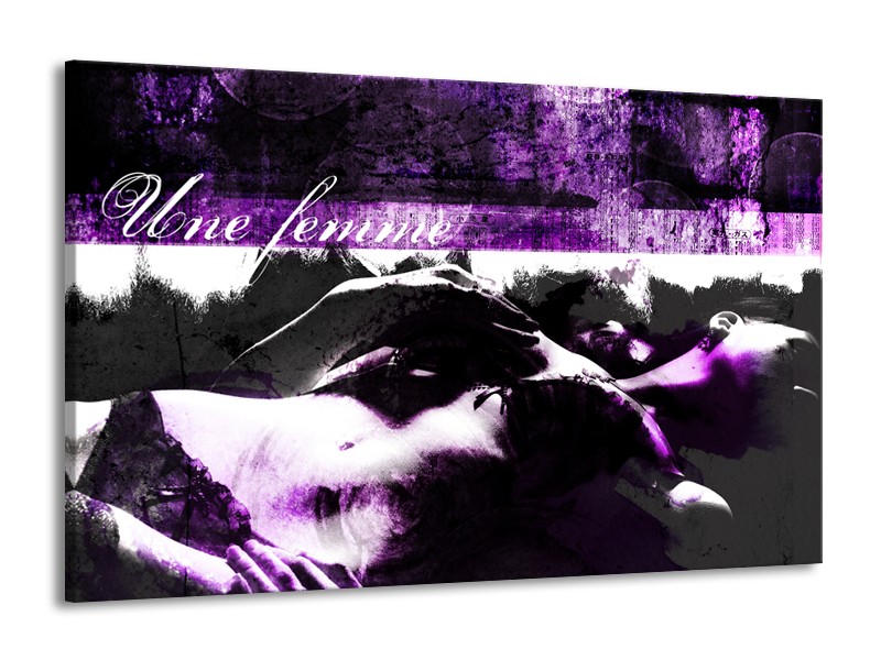 Glasschilderij Vrouw, Kunst | Paars, Zwart, Grijs | 140x90cm 1Luik