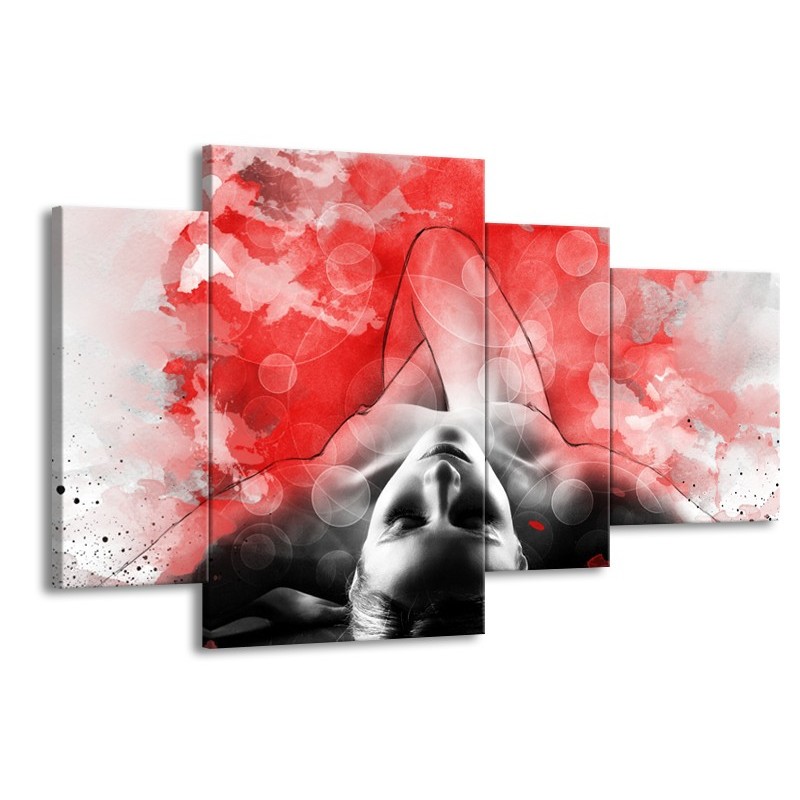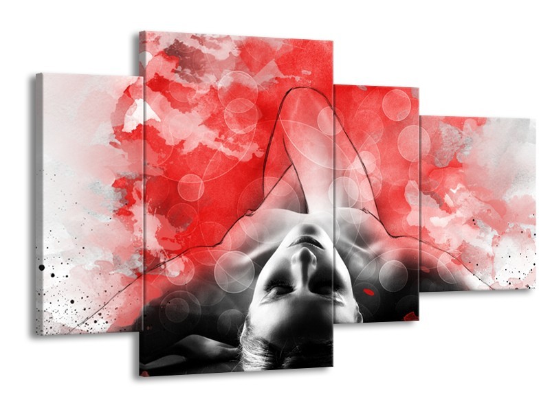 Glasschilderij Vrouw, Kunst | Rood, Grijs, Wit | 120x75cm 4Luik