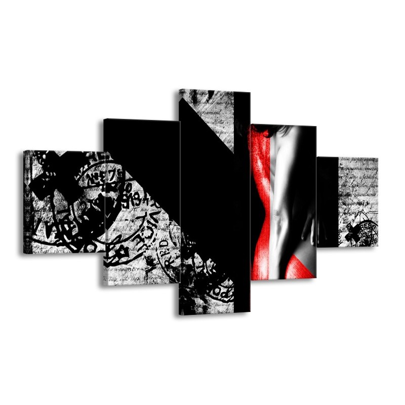 Glasschilderij Vrouw, Kunst | Rood, Zwart, Grijs | 125x70cm 5Luik