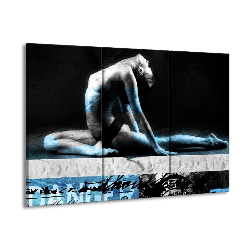 Glasschilderij Vrouw, Kunst | Zwart,Blauw, Grijs | 60x90cm 3Luik