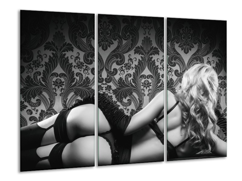 Glasschilderij Vrouw, Kunst | Zwart, Wit, Grijs | 120x80cm 3Luik