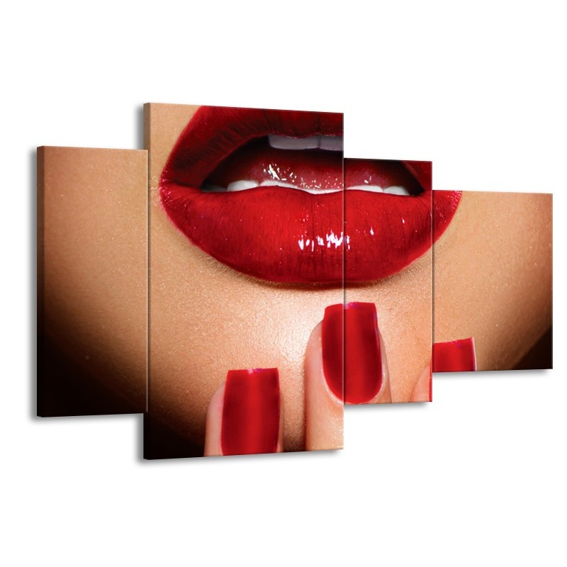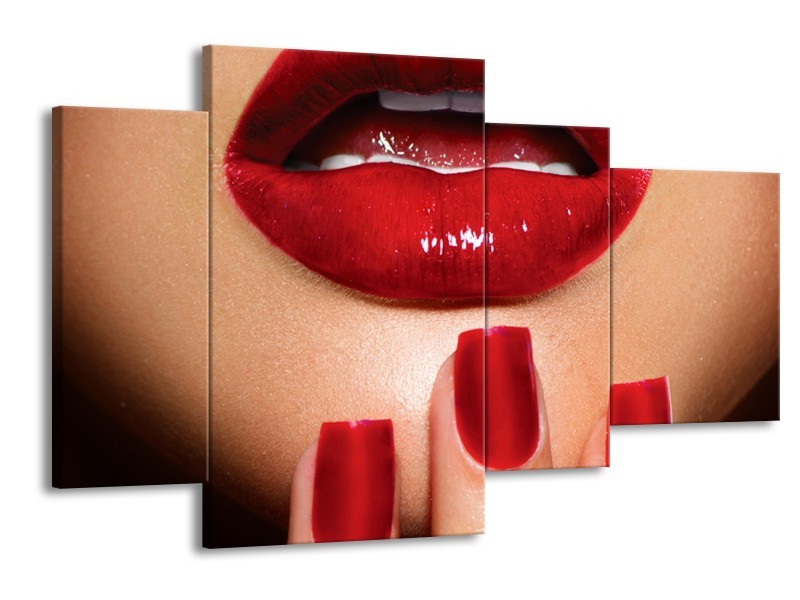 Glasschilderij Vrouw, Lippen | Rood, Bruin | 120x75cm 4Luik