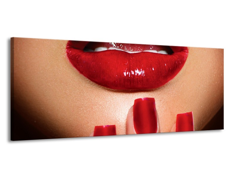 Glasschilderij Vrouw, Lippen | Rood, Bruin | 145x58cm 1Luik