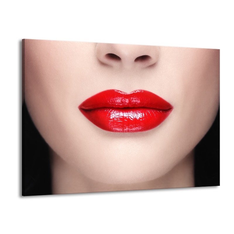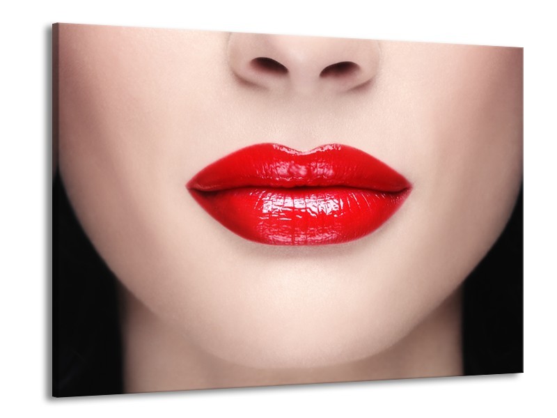 Glasschilderij Vrouw, Lippen | Rood, Crème | 100x70cm 1Luik