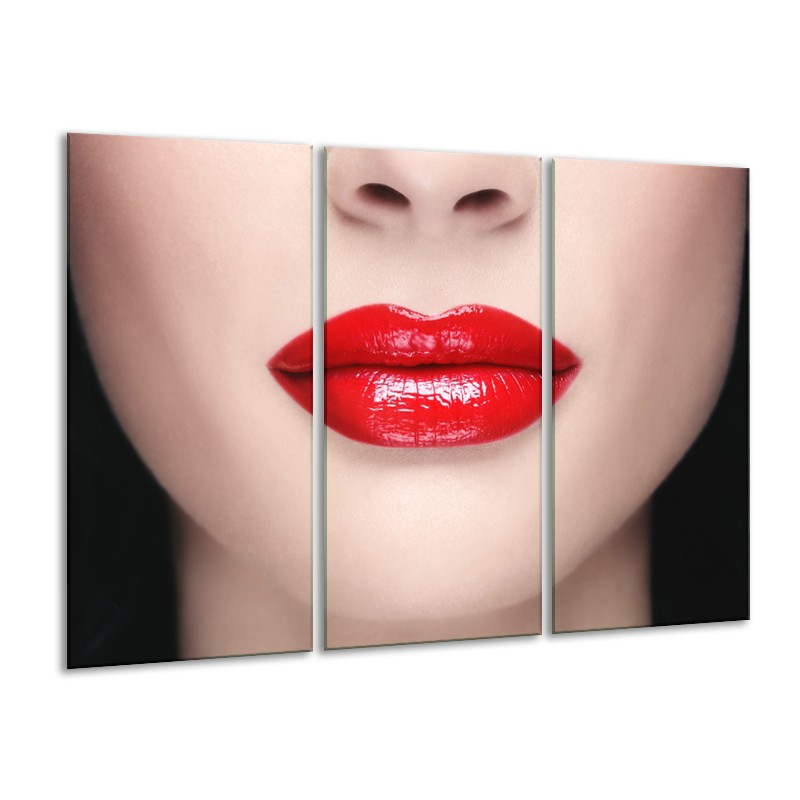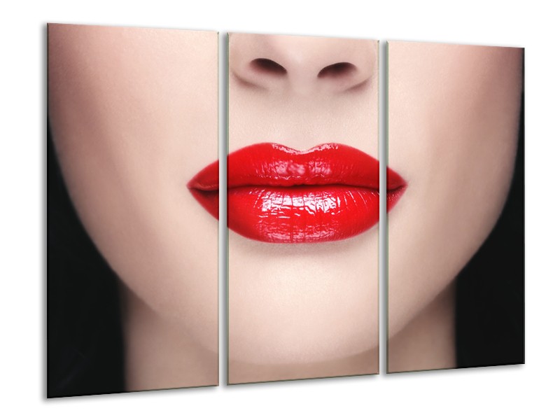 Glasschilderij Vrouw, Lippen | Rood, Crème | 120x80cm 3Luik