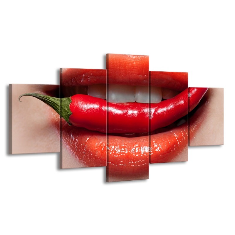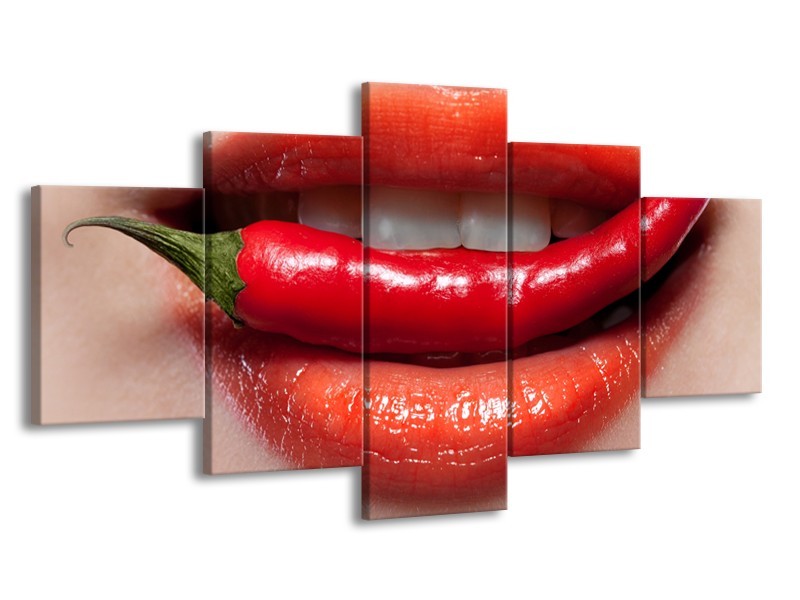 Glasschilderij Vrouw, Lippen | Rood, Crème | 150x80cm 5Luik