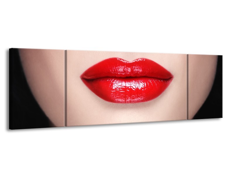 Glasschilderij Vrouw, Lippen | Rood, Crème | 170x50cm 3Luik
