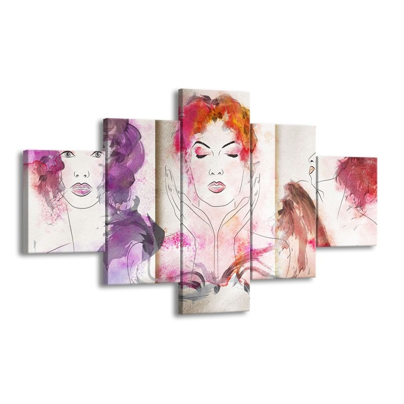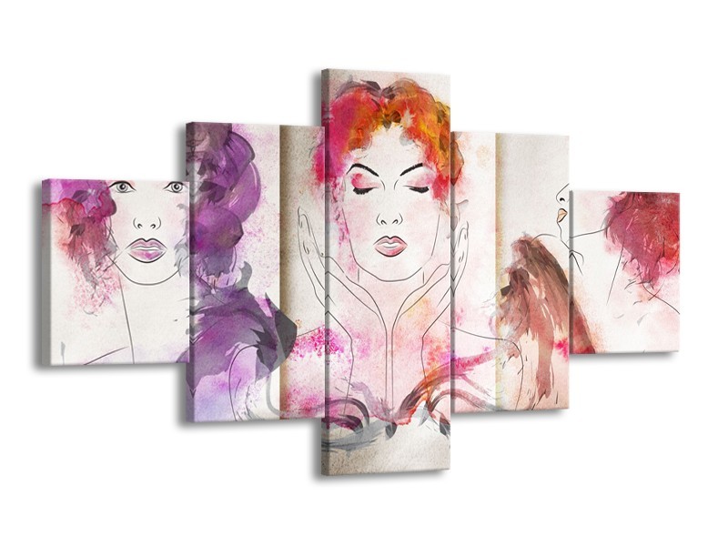 Glasschilderij Vrouwen | Crème , Paars, Roze | 125x70cm 5Luik
