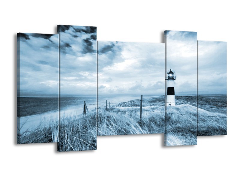 Glasschilderij Vuurtoren | Blauw, Grijs | 120x65cm 5Luik