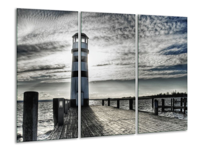 Glasschilderij Vuurtoren | Grijs, Blauw | 120x80cm 3Luik
