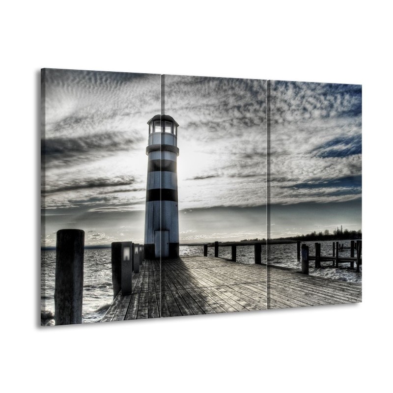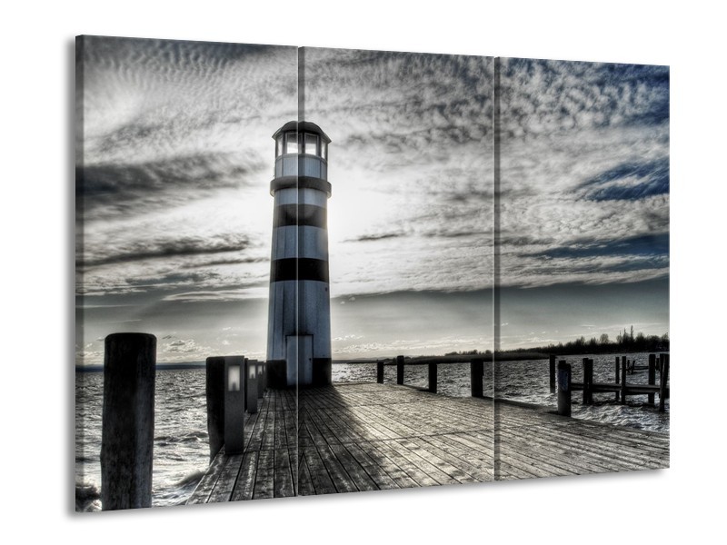 Glasschilderij Vuurtoren | Grijs, Blauw | 60x90cm 3Luik