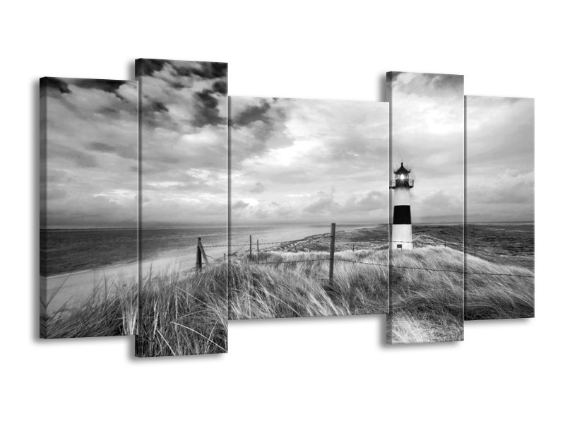 Glasschilderij Vuurtoren | Grijs, Zwart, Wit | 120x65cm 5Luik