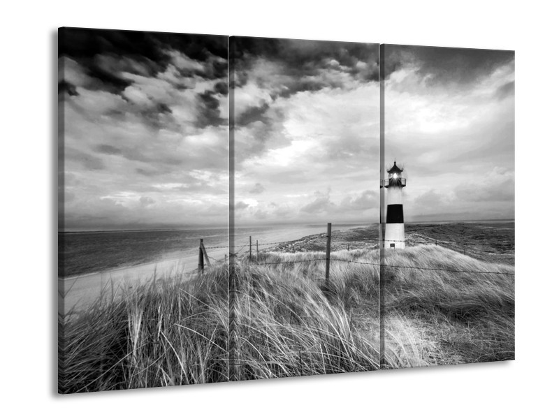 Glasschilderij Vuurtoren | Grijs, Zwart, Wit | 60x90cm 3Luik