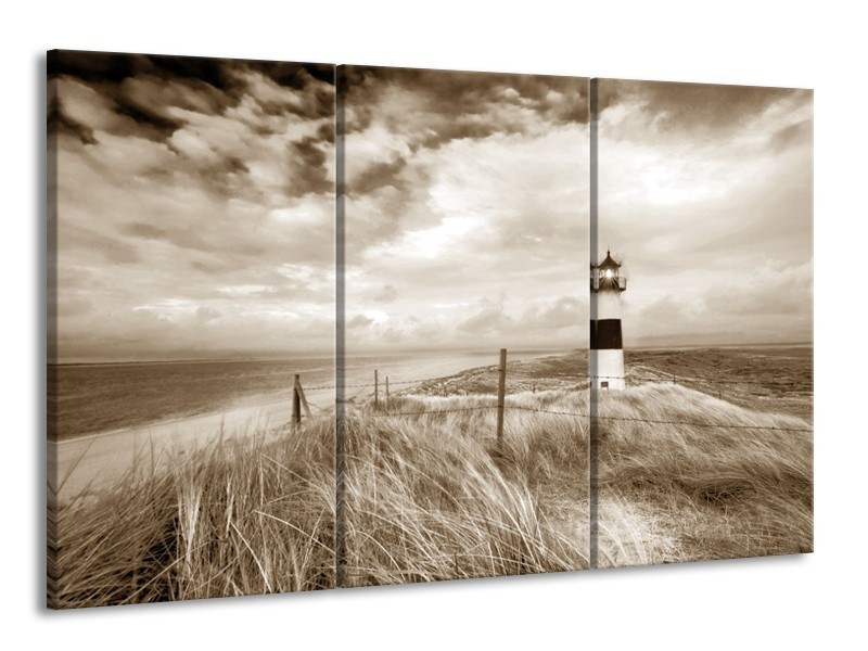 Glasschilderij Vuurtoren | Sepia | 165x100cm 3Luik