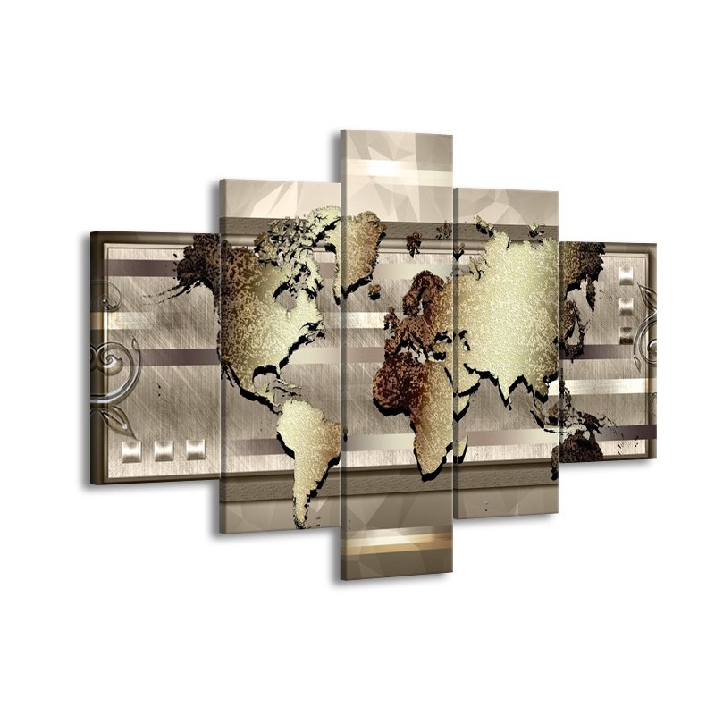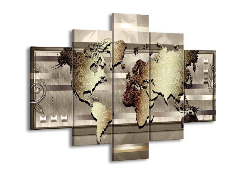 Glasschilderij Wereldkaart | Bruin, Goud | 150x105cm 5Luik