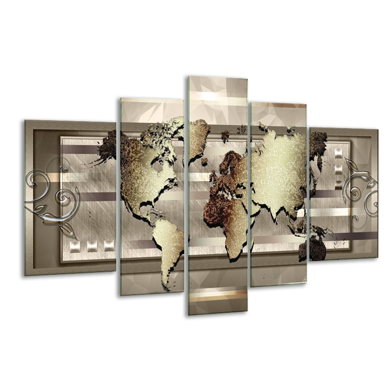 Glasschilderij Wereldkaart | Bruin, Goud | 170x100cm 5Luik