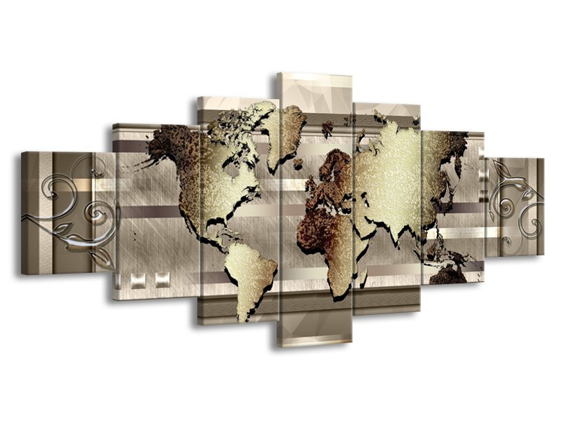 Glasschilderij Wereldkaart | Bruin, Goud | 210x100cm 7Luik