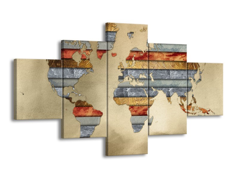 Glasschilderij Wereldkaart | Grijs, Crème, Bruin | 125x70cm 5Luik