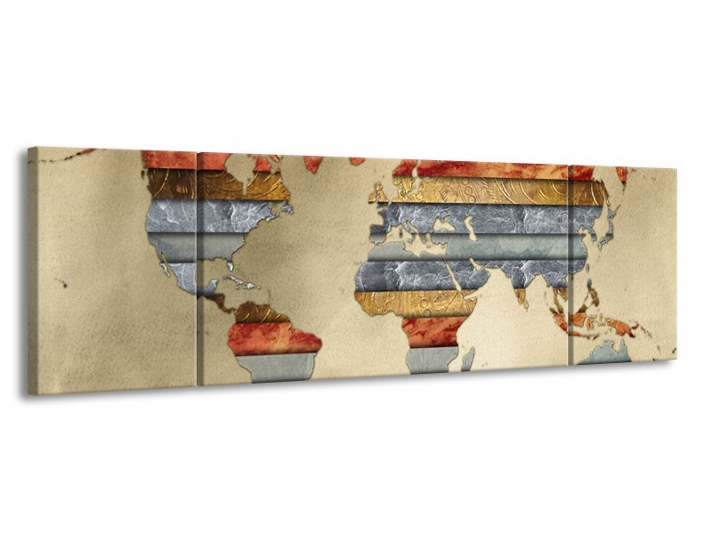 Glasschilderij Wereldkaart | Grijs, Crème, Bruin | 170x50cm 3Luik