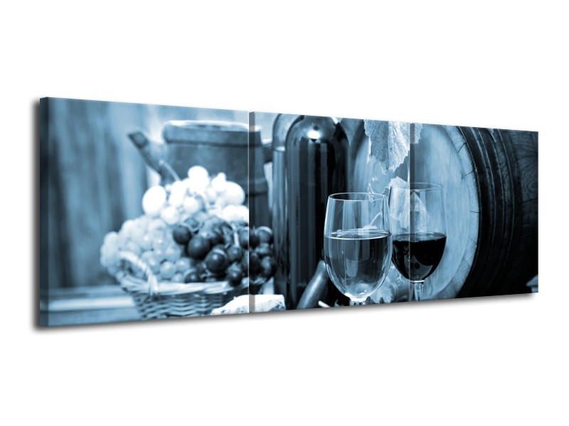 Glasschilderij Wijn, Keuken | Blauw, Grijs | 120x40cm 3Luik