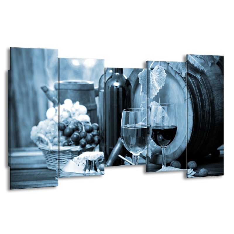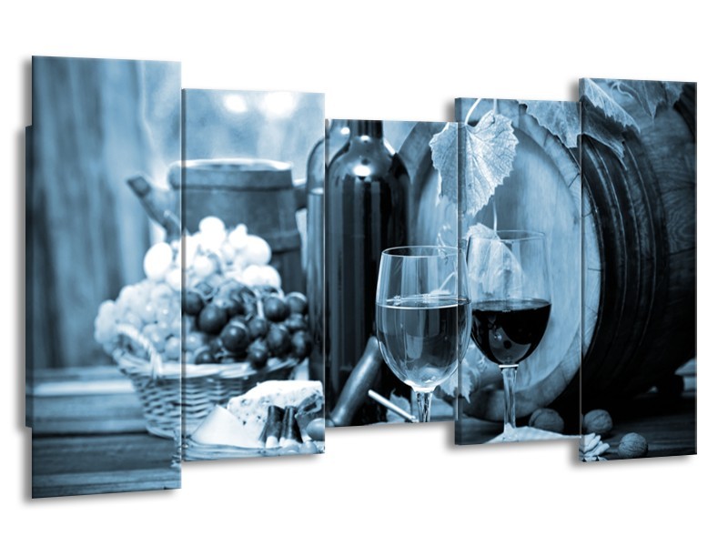 Glasschilderij Wijn, Keuken | Blauw, Grijs | 150x80cm 5Luik