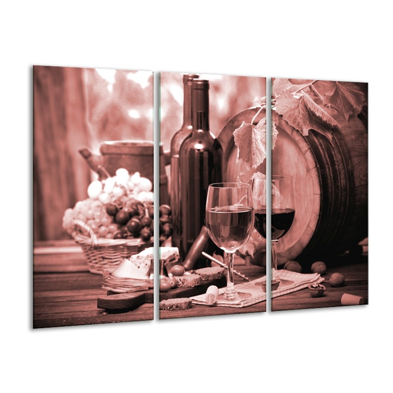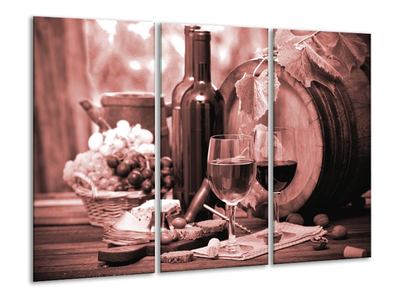 Glasschilderij Wijn, Keuken | Bruin, Rood | 120x80cm 3Luik
