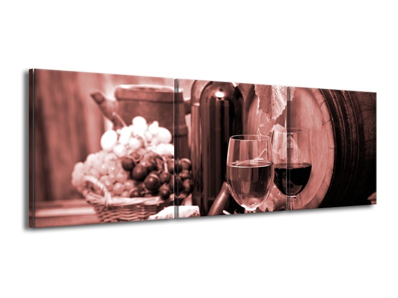Glasschilderij Wijn, Keuken | Bruin, Rood | 150x50cm 3Luik