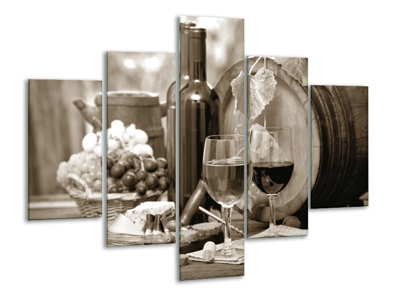 Glasschilderij Wijn, Keuken | Sepia | 100x70cm 5Luik