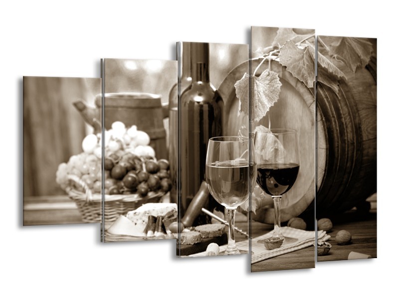 Glasschilderij Wijn, Keuken | Sepia | 150x100cm 5Luik