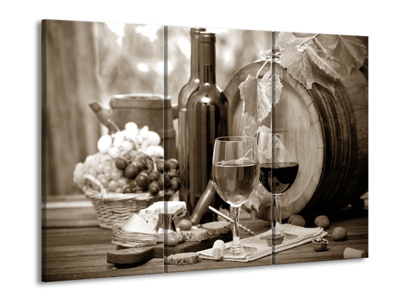 Glasschilderij Wijn, Keuken | Sepia | 60x90cm 3Luik
