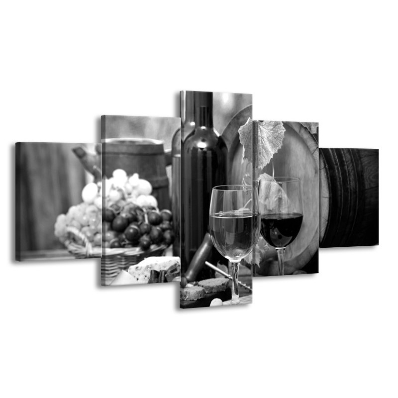 Glasschilderij Wijn, Keuken | Zwart, Wit, Grijs | 150x80cm 5Luik