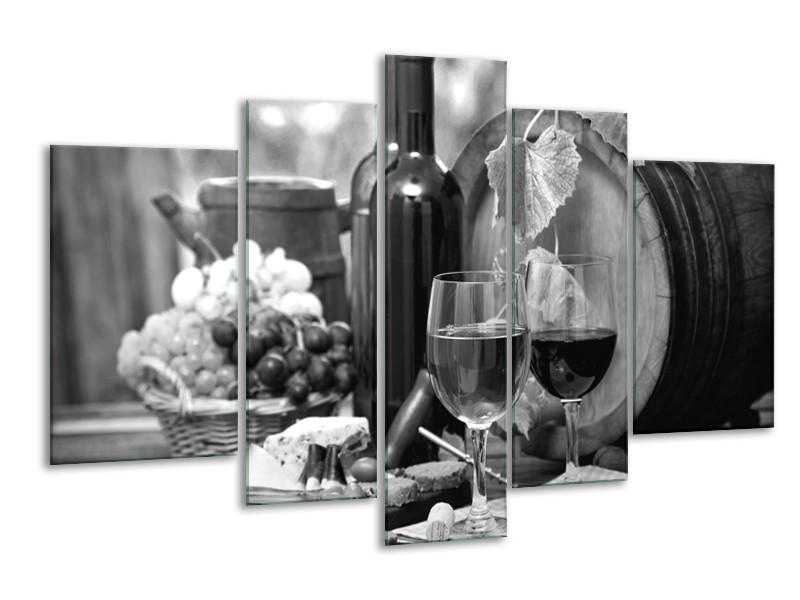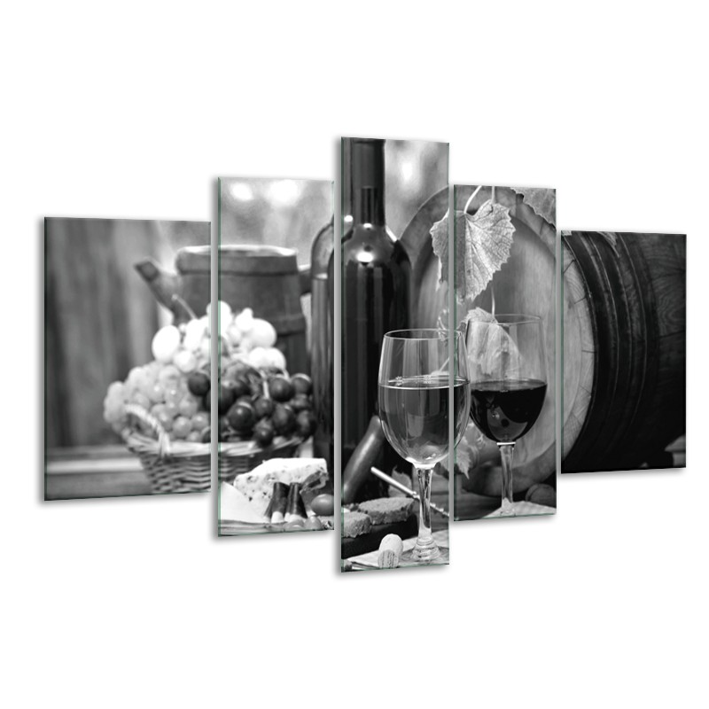 Glasschilderij Wijn, Keuken | Zwart, Wit, Grijs | 170x100cm 5Luik