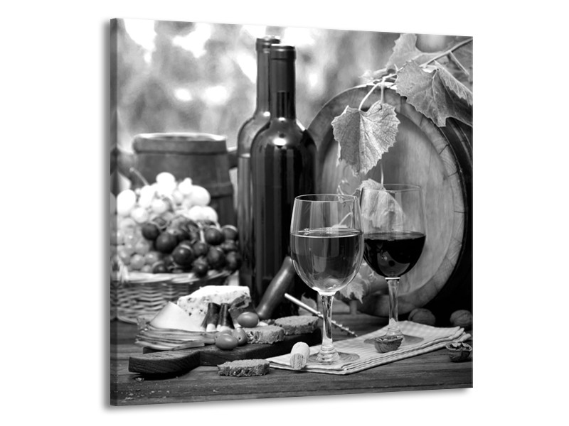 Glasschilderij Wijn, Keuken | Zwart, Wit, Grijs | 70x70cm 1Luik