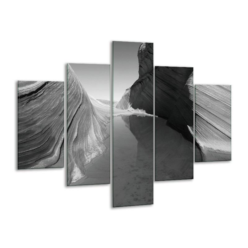 Glasschilderij Zand | Zwart, Grijs | 100x70cm 5Luik