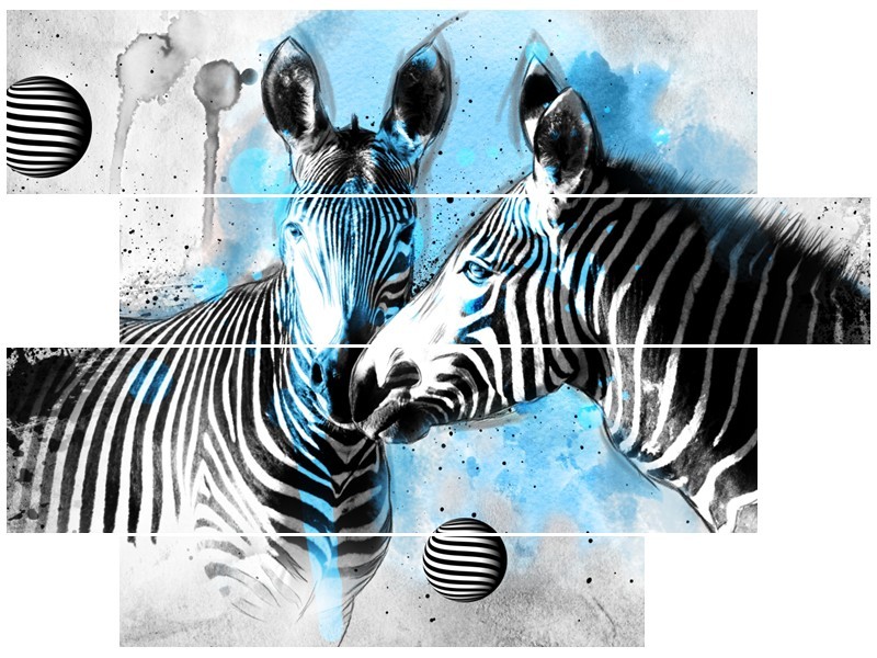Glasschilderij Zebra, Dieren | Blauw, Zwart, Wit | 115x85cm 4Luik